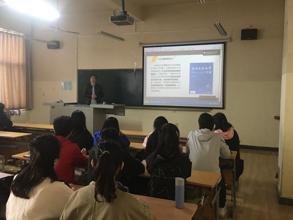 杨大伟老师结合专业特点,从“什么是科技论文”、“为什么要写科技论文”和“如何写好科技论文”三个方面出发,层层剖析,他的讲解逻辑清晰,由浅入深,为同学们丰富了许多科技论文方面的知识。