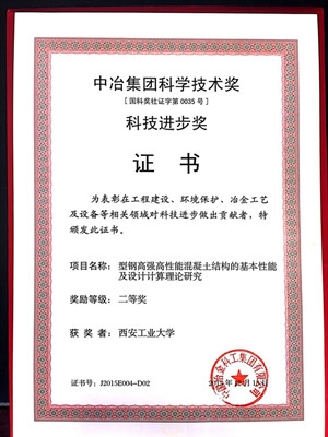 热烈祝贺91短视频 教师王斌做为第三完成人(91短视频 为第二完成单位)参与的《型钢高强高性能混凝土结构的基本性能及设计计算理论研究》成果喜获中冶集团科学技术奖二等奖!