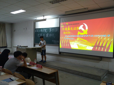 典礼伴随着庄严地国歌声开始。学院党委组织委员徐慧子首先向全体学员宣读了学院党校培训班有关学习纪律规定及要求,倡导全体学员从基础做起,踏实学习,严格律己。随后, 54期党校培训班优秀学员张耀化同学发言,向55期党校学员从学习成绩、端正态度、学习党的知识和端正入党动机四个方面分享了自己参加党课学习的体会和感受。55期党校培训班学员代表李仑同学谈了自己入校以后就一直期盼参加党校培训的心情和过程,并表达了自己参加本期培训班的高兴和激动的之情,他以对党的热爱和对今天参加培训的感恩之心,向全体学员发出认真学习,珍惜机会的倡议。