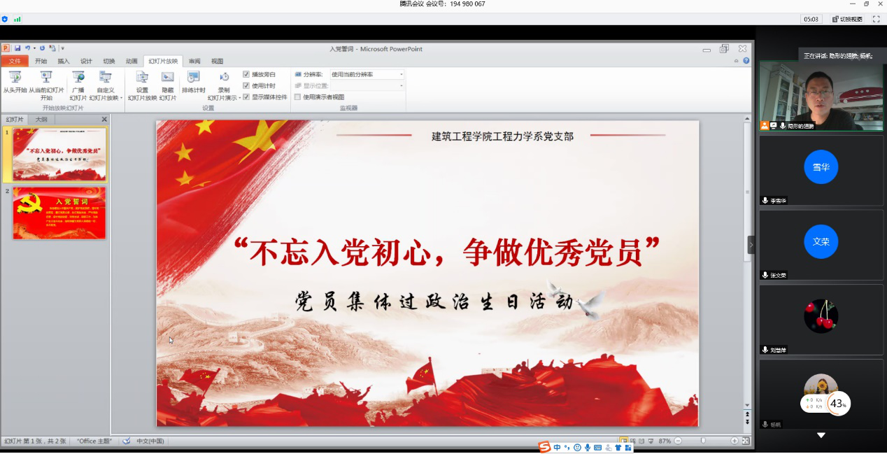 2020年6月30日上午,工程力学党支部通过腾讯会议开展了“党员集体过政治生日”主题党日活动。91短视频