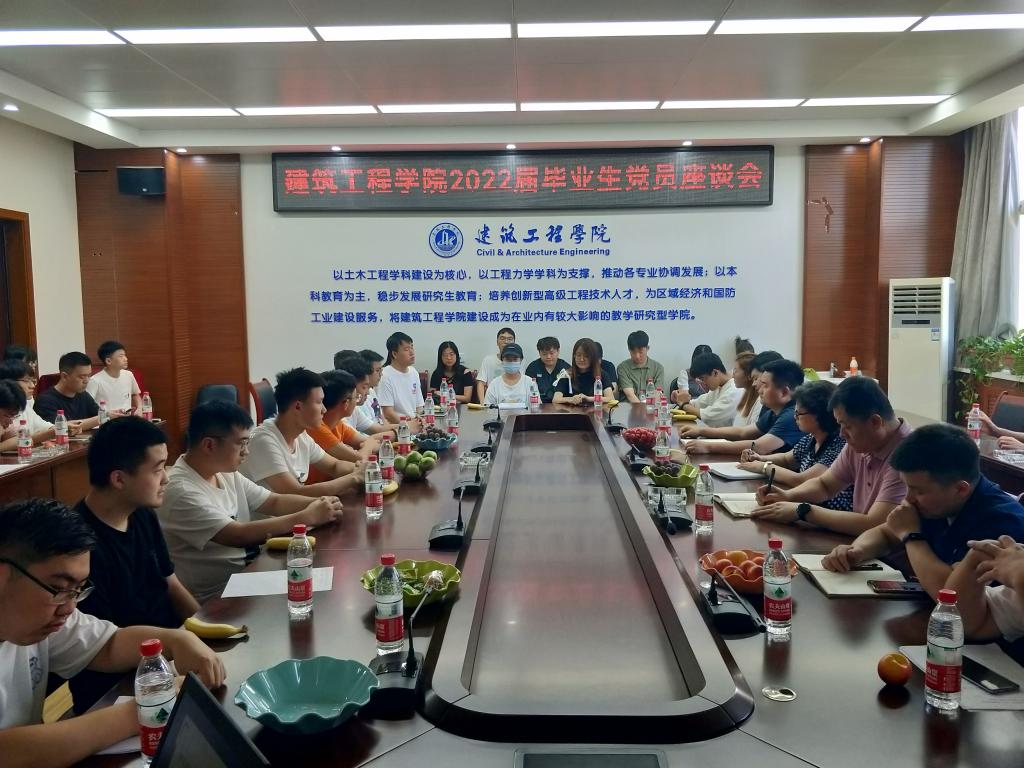 在工4-302会议室召开2022届毕业生党员座谈会,学院党委书记刘慧萍、副书记贾建利出席座谈会,毕业班辅导员何鹏程、2020级辅导员刘冬及2022届毕业生党员代表参加此次会议。