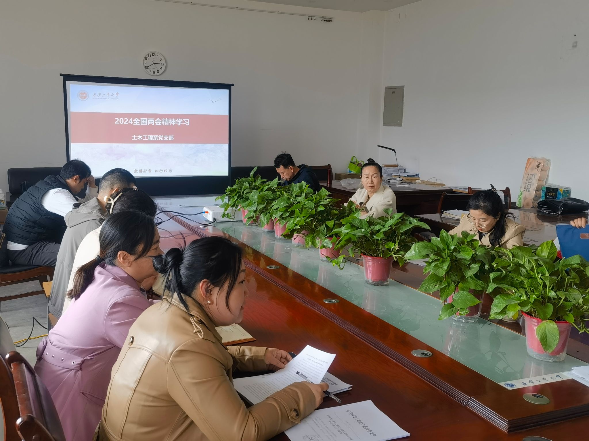 首先,会议集中讨论学习了习近平总书记全国两会期间重要讲话精神和2024年全国两会政府工作报告,黄华院长强调,一是要准确把握两会对教育、科技、人才等工作提出的新部署新要求,切实推动两会精神落地见效。二是要提高政治站位,深刻领会全国两会精神的重大意义和丰富内涵。支部全体党员教师围绕深入学习总书记关于发展新质生产力的一系列重要论述,深刻认识到落实新质生产力,要从学习领悟习近平关于新质生产力的重要论述开始,这是发展新质生产力的“根”与“魂”。