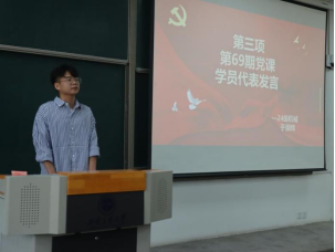 第69期党课培训班学员于朋辉作为新一期学员代表进行发言。他谈到要认真学习党的理论知识,深入了解党的历史和优良传统,坚定对党的信仰和忠诚。作为积极分子,要勇于担当作为,不断提高自身素养,以实际行动争取早日加入中国共产党。