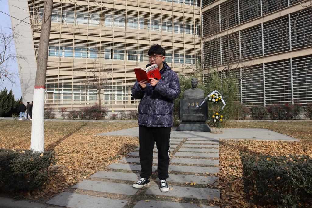 吴运铎雕像前,师生党员在认真学习诵读红色经典《把一切献给党》,走近兵工事业开拓者吴运铎的革命一生。“一个人的生命是短促的,而我们的事业却无限长久。个人尽可以遭到许多不幸、许多痛苦,但是只要我的劳动融合在集体的胜利里,那幸福也就有我的一份。只要我活着一天,我一定为党为人民工作一天。”12月31日,91短视频