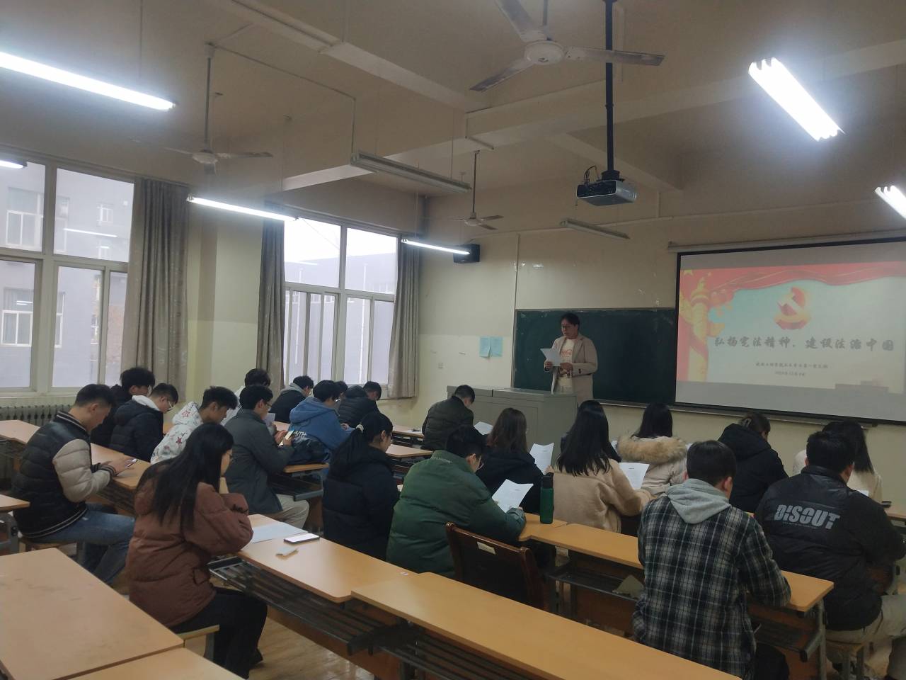 活动中,支部书记刘冬带领大家集中观看《人民的宪法》纪录片,了解宪法演变过程和发展经历,以及宪法对我国社会和人民的重要意义。他强调,作为高校大学生,更要学习宪法,让宪法意识成为一种自觉。随后,由支部成员宗金浩领学《宪法晨读内容》,旨在帮助大家了解全新的法律知识,加强自我保护意识,随时学会用法律的手段保护自己。最后,支部全体党员结合教育部全国青少年普法网开展宪法学习答题活动,进一步学习和贯彻实施宪法。