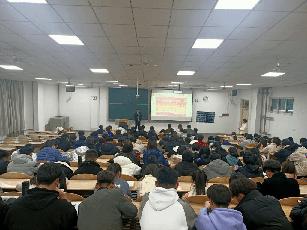 团委于11月25日晚在教1-103开展2020-2021学年“忆初心,强使命”主题团课,学院团学组织干部及团员青年共170余人参加。