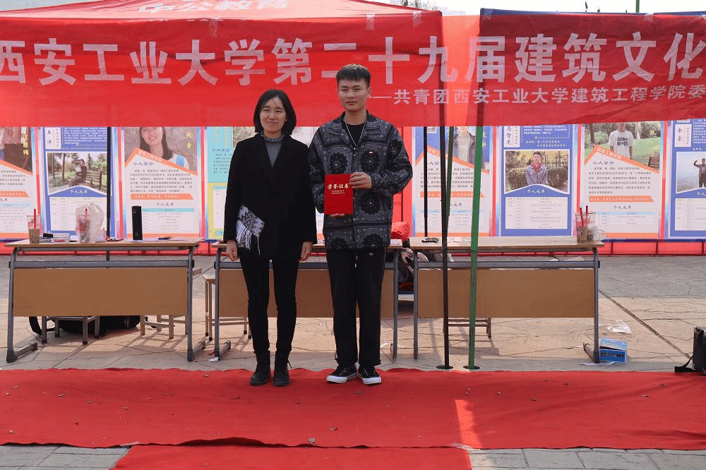 为素材,充分结合专业特色,同学们拿起手中画笔,通过手绘作品传达出对母校的热爱,领略别样的仙宫之美!建筑知识竞赛则是通过类型丰富的建筑知识题目,让在校师生增强对建筑文化知识的了解,科普同时大家也收获了精美小礼品。与此同时,现场趣味小活动如火如荼,同学们斗智斗勇,各显神通,其乐融融!彭晶蓉为“印象西工”手绘展前三名颁奖并申请寄语。开幕式在大家的欢声笑语中圆满落幕。