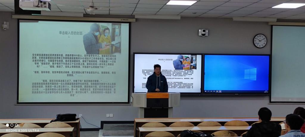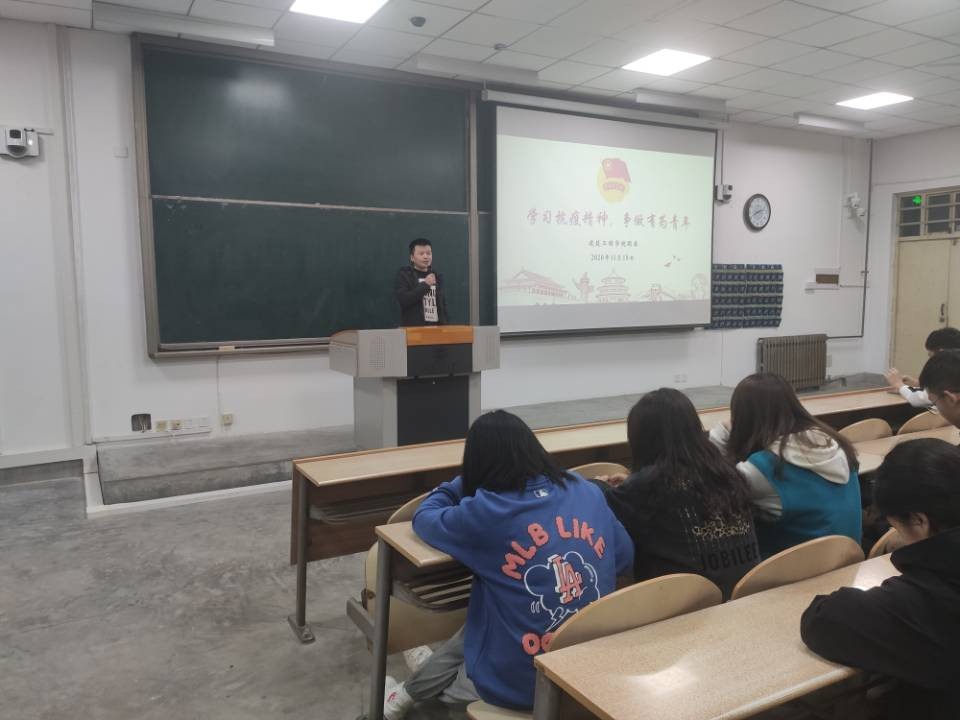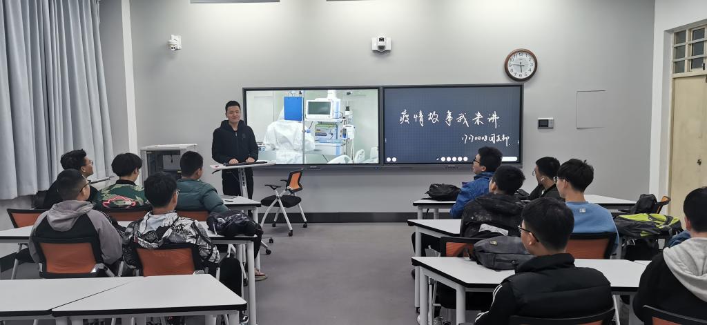 “疫情故事我来讲”主题团日活动在教1-101顺利举行。学院团委书记刘冬与2019级200余名团员青年共同参与此次学习。