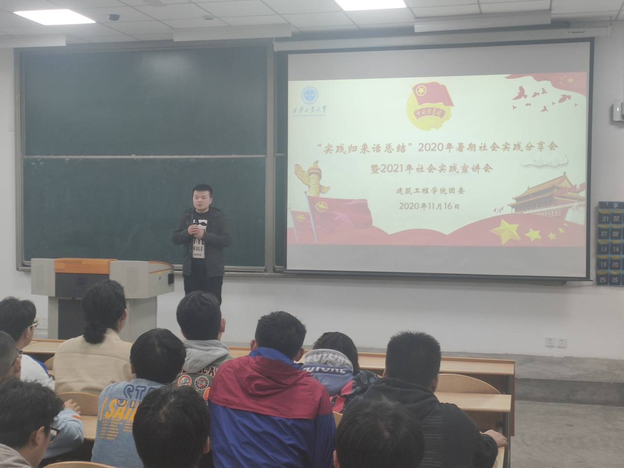 “实践归来话总结”2020年暑期社会实践分享暨2021年社会实践宣讲会在教1-101举行,学院2019级全体本科生参加此次分享会,会议由学院团委书记刘冬主持。