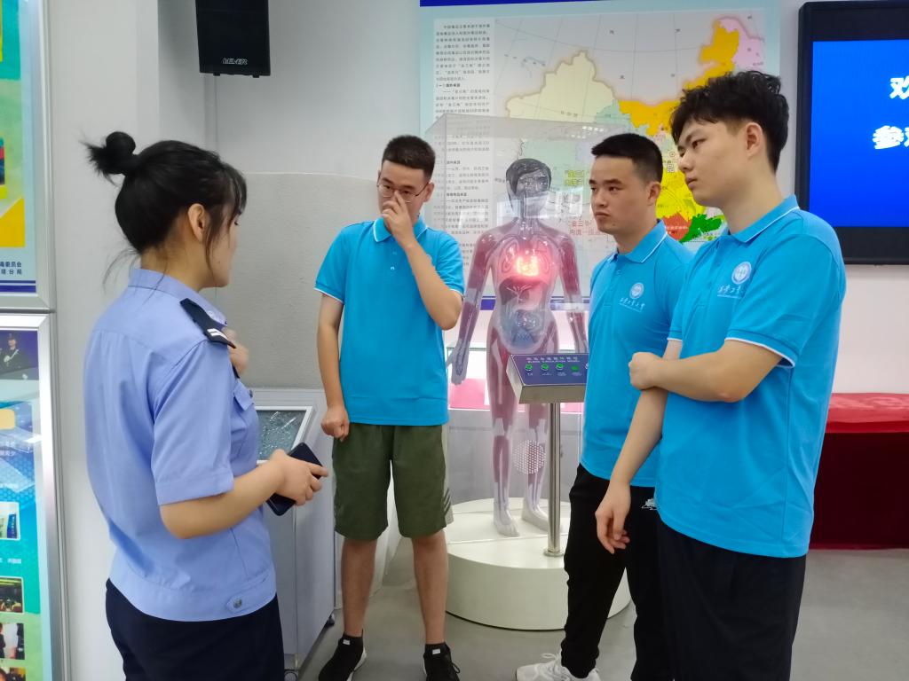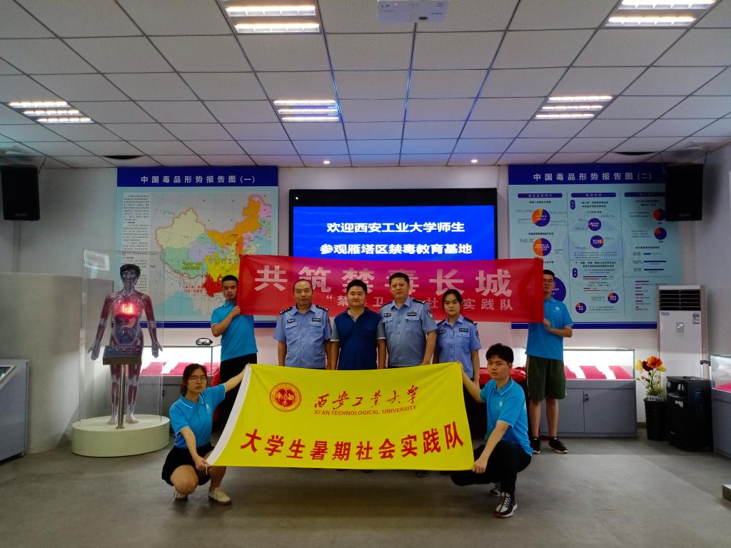 8月4日,实践队赴雁塔区禁毒教育基地参观学习,并且与雁塔区禁毒委员会办公室签订实践教育基地共建协议书。工作人员从禁毒历史、毒品危害、毒情形势、相关法律法规等方面进行了详细讲解,同时利用人体模型,生动的展示了毒品在人体中的反应的过程。另外,雁塔区禁毒大队大队长呼警官向实践队员讲述了禁毒故事,展示了人民警察有效打击毒品犯罪,保障了人民群众的生命财产安全。在参观即将结束的时候,师生们在基地庄严宣誓:“从我做起,从现在做起,珍爱生命,远离毒品,积极投身禁毒斗争行列,为国家禁毒事业做出自己应有的贡献”。