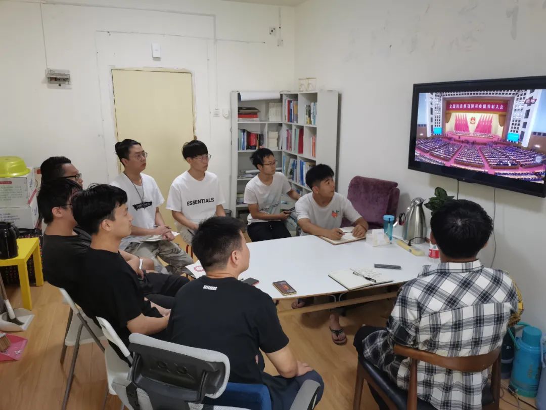 团委书记刘冬、学院团学组织学生干部在辅导员工作站集体收看了直播大会,同时,学院积极组织团员青年线上同步收看直播。