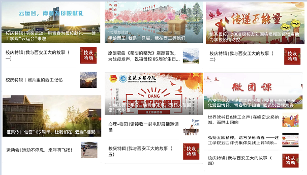 学生工作始终坚持贯彻“立德树人”根本任务,以“围绕学生、关照学生、服务学生”为理念,致力于做好新时代青年的思想政治引领及服务青年大学生成长成才工作。作为网络思想政治教育工作主要抓手,“西安工大青春建工”微信公众平台自2017年5月开通以来,始终秉持弘扬校园正气,服务青年成长的理念,密切结合学院中心工作,深入挖掘扩大传播优势,始终保持与时俱进的奋斗姿态,以学生喜闻乐见的方式积极传播正能量,切实加强青年学生网络思想政治教育工作。