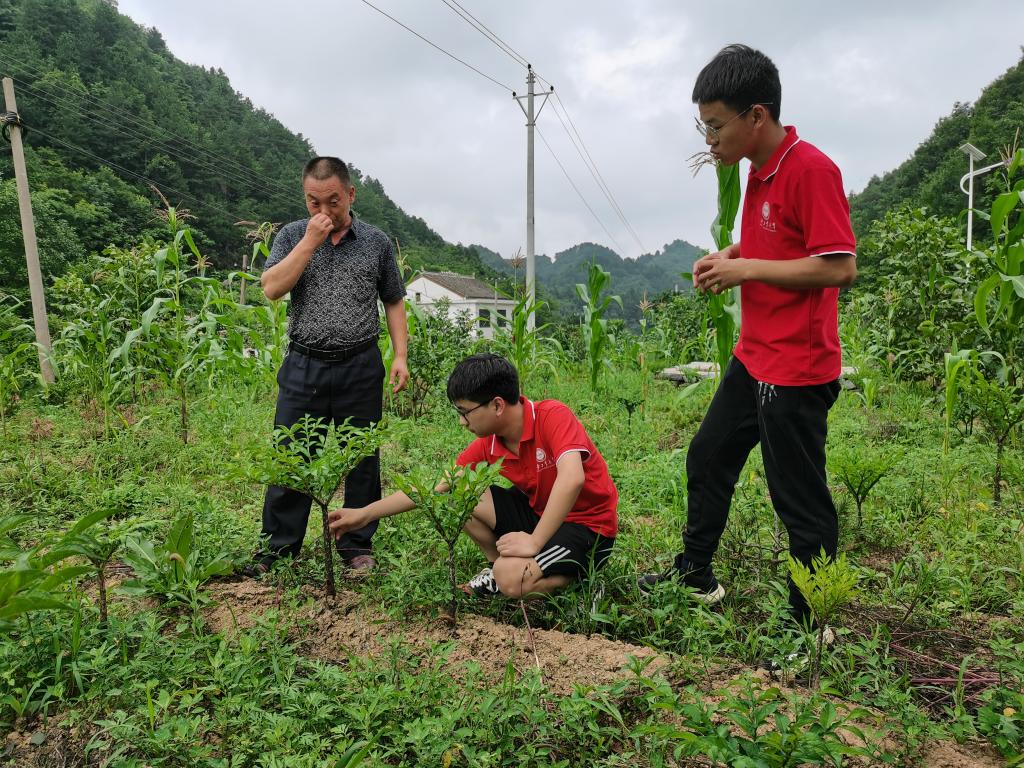 核桃坪村村主任张瑞和村支书王兴明为实践队员介绍了该村的基本情况。核桃坪村地处山区,海拔在2000米左右,30%以上为建档立卡贫困户,全村共有村民200余户,年轻人大多外出打工,只剩下妇女、儿童和老人留守。村里的主要经济作物和农作物为核桃、魔芋、连翘和白皮松。王兴明介绍说,近年来该村通过修路、铺设自来水管道等不断改善村民生活的基础设施,并结合当地实际建起了各类专业合作社,推进农业产业化。