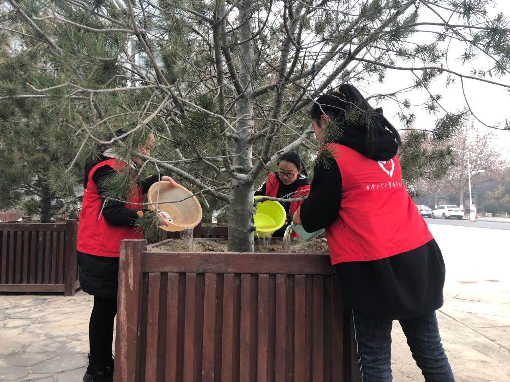 青年志愿者协会组织20余名志愿者开展了“绿丝带在行动”为校园绿化树浇水护树志愿服务活动,有效保护了校园树木景观,劳动成效和奉献精神受到广大师生的热情点赞。