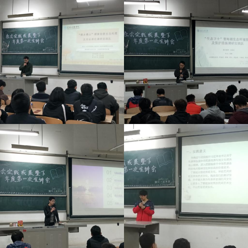 在教1-205开展“实践归来话收获”社会实践交流分享会暨下年度实践首次宣讲会。“智慧桥梁”、“生态卫士”、“绿水青山”、“匠心传承”实践团队成员与大家分享了暑期社会实践的收获和体会,2018级全体学生与部分2019级学生参加了此次分享会,共同交流学习。