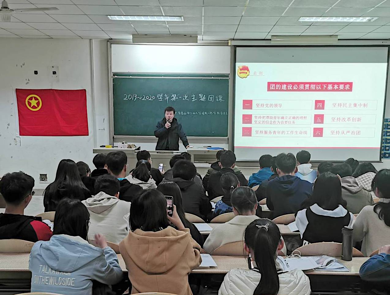 在教2-201教室开展“新时代的共青团员”第一次主题团课,学院团学干部50余人参加。