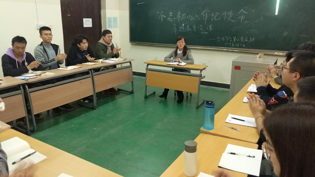 党委书记张英以“青年与爱国”为主题为土木学生第三党支部的学生党员们上了一节生动的党课。