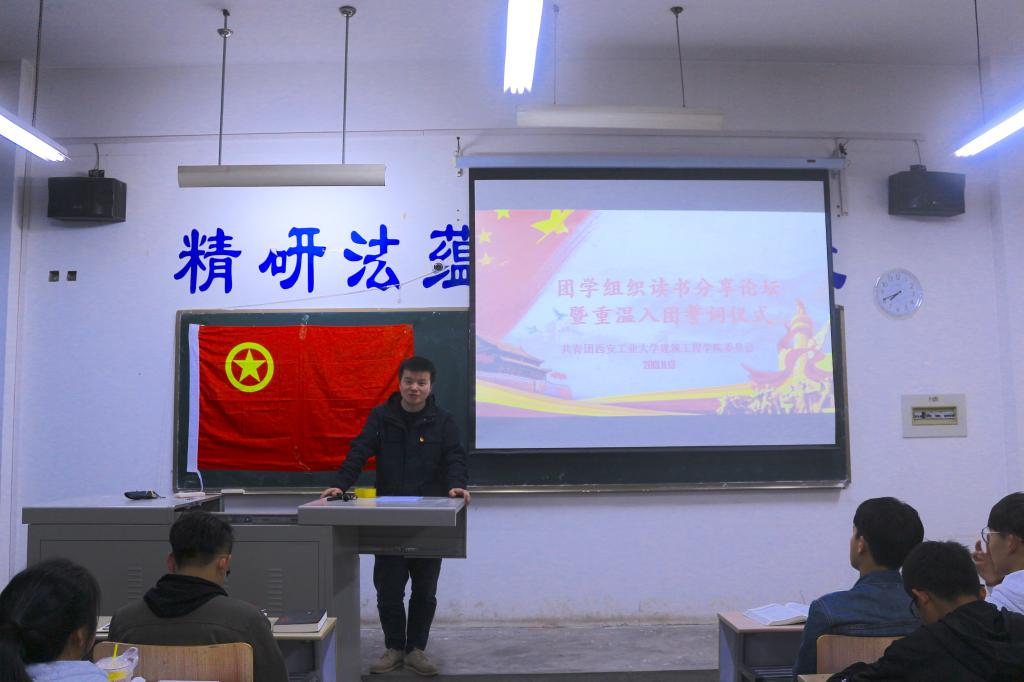 团委书记刘冬以及全体团学干部,活动由学生会学习部副部长刘复泰主持。此次活动旨在通过阅读分享书籍、重温入团誓词,让广大团员青年通过书籍充实灵魂、净化心灵,让大家在书香中共同感受经典,享受生活。