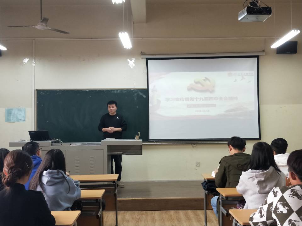 团学组织在工4-202举行“学习宣传贯彻十九届四中全会精神”学习会,传达学习党的十九届四中全会精神。学院团委书记刘冬主持会议并讲话。他强调,学习宣传贯彻党的十九届四中全会精神作为当前和今后一个时期的重大政治任务,应及时进行传达、深入学习领会、坚决贯彻落实。