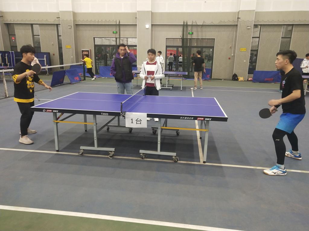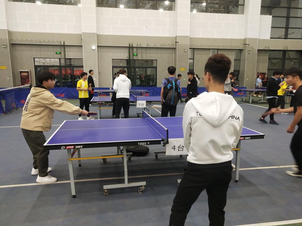 “迎新杯”乒乓球赛在体育馆进行。此次比赛旨在增进同学间交流,丰富同学们的课余生活,同时展现大学生积极向上的精神面貌。