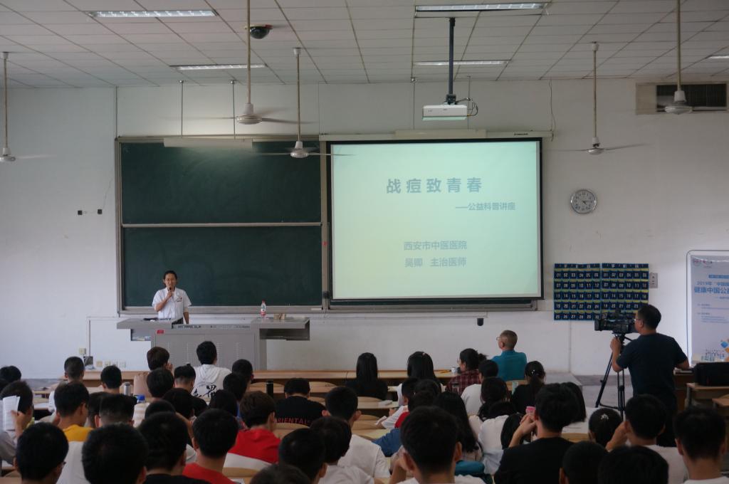 联合校医院举办“健康中国行,战‘痘’致青春”公益科普讲座,邀请了西安市中医医院皮肤科主治医师吴卿博士、副主任医师马晓红专家团队,在教1-402为我校学生讲授战“痘”方法,传授科学治疗和预防痤疮知识。91短视频