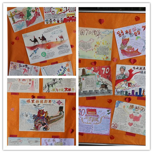 活动中,学生们充分发挥主动性,分工合作,利用课余时间搜集有关资料,亲手制作手抄报主题突出,图文并茂,融时代性、知识性、教育性于一体,有着陕西特色的兵马俑、一带一路等文化元素和祖国科技飞速发展的代表性成果在学生们的画笔中跃然纸上,既表达了对祖国母亲深深地热爱,又体现了学生们的创造力、合作精神和集体荣誉感。一幅幅优秀的作品饱含深情,表达爱党、爱国、爱校的情感,为新中国成立70周年献礼!经过评选,有45幅作品榜上有名,这些作品在学校图书馆二楼大厅展出。展览吸引了不少师生驻足观赏,简单的勾画色彩,繁杂的图案堆砌,彰显出建国70周年的鲜明主题特色。本次活动负责人学生党员白洋表示,“通过手抄报活动,能够让广大青年学生们更加感受到时代进步速度之快,更加自豪于国家发展稳步之姿,更加清楚地认识到自己的使命担当。”