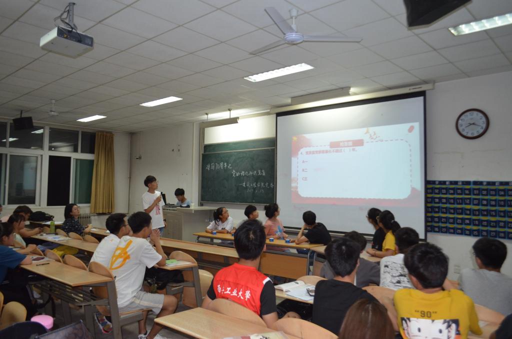 考试结束后,在党课负责人有序的准备下,党的理论知识竞赛预赛开始。12个党课学习小组各推选2人参赛,竞赛分为4轮进行,各参赛小组通过抽签决定比赛顺序。赛前,活动主持人陈新为大家介绍了比赛答题规则,竞赛流程设为必答题,抢答题,风险题三个环节,内容涉及党的历史、党的基本理论、十九大精神、党建知识等方面的知识,内容全面、形式多样。