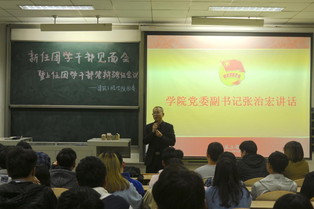 团委经过前期报名、竞聘答辩、谈话考察等环节,顺利完成了各学生组织的换届工作。3月18日下午,学院在教2-212教室举行新任团学组织干部见面会暨上届团学组织干部总结聘任会议,学院党委副书记张治宏、团委书记安春雨、2017级辅导员刘冬、徐慧子以及各学生组织干部参加了会议。