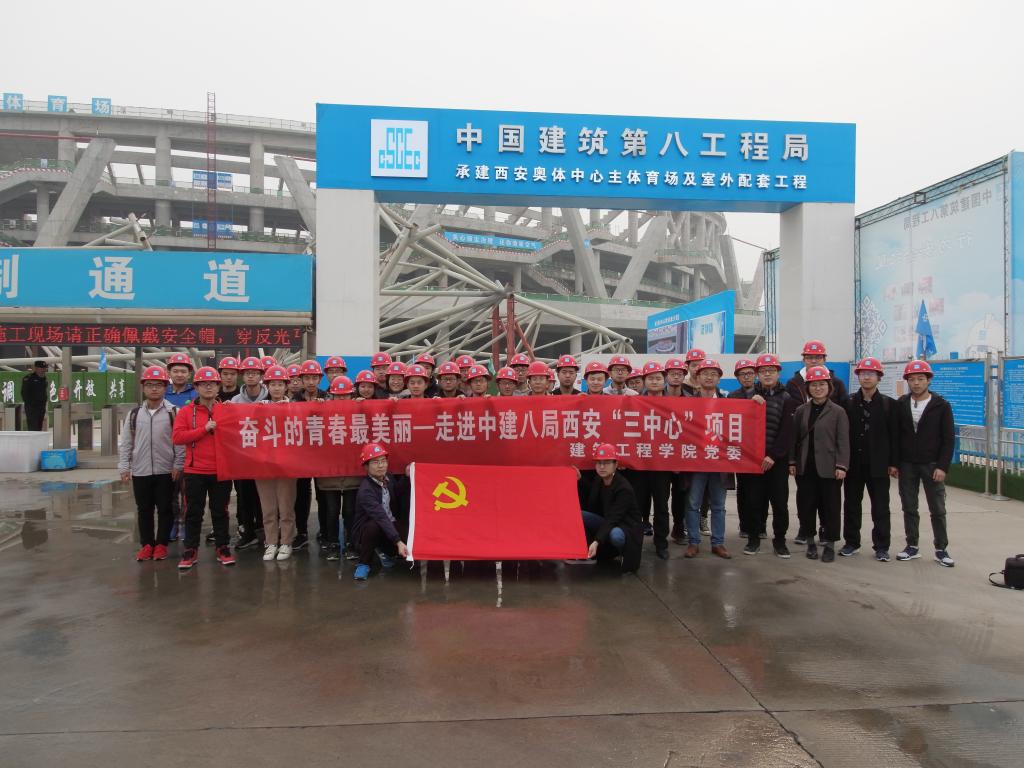 11月30日,我校建工学院党委副书记张治宏带领学院师生赴中建八局西安“三中心”项目(西安奥体中心主体育场、西安丝路国际会议中心、西安丝路国际展览中心)参观调研。此次活动由建工学院党委主办,给排水学生党支部和土木学生第二党支部承办。