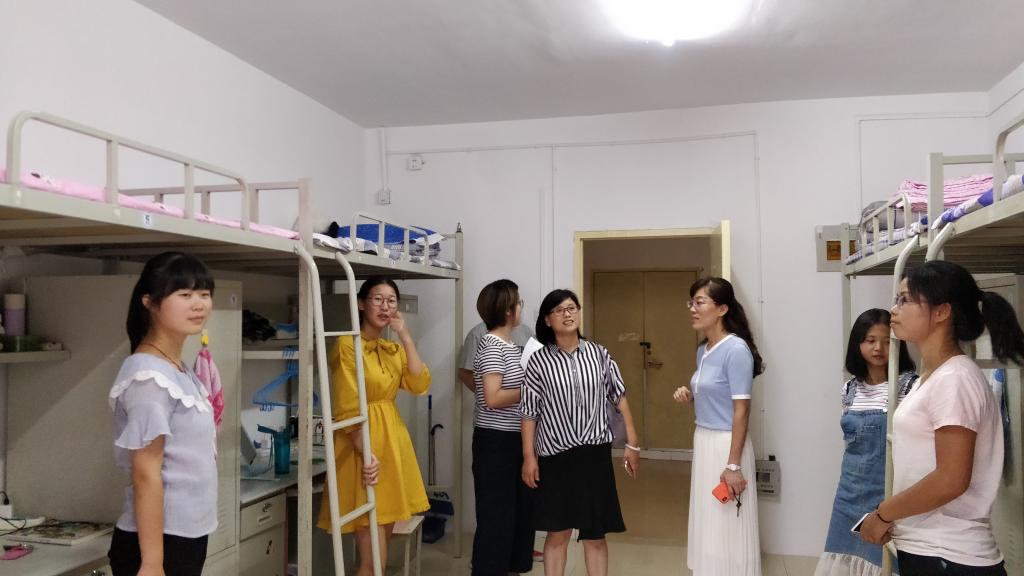 党委书记张英、副院长刘慧萍、辅导员刘冬和徐慧子进行了新生宿舍的走访活动。