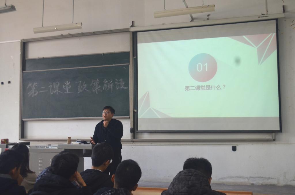 在教1-205举办“第二课堂”政策宣讲会,宣讲会邀请了校团委黄晓龙老师及学校第二课堂管理中心工作人员来为同学们解读第二课堂相关政策,学院团委书记刘冬、团委副书记白洋、学院第二课堂管理中心相关负责人冯腾携2018、2019级同学共同参与聆听。