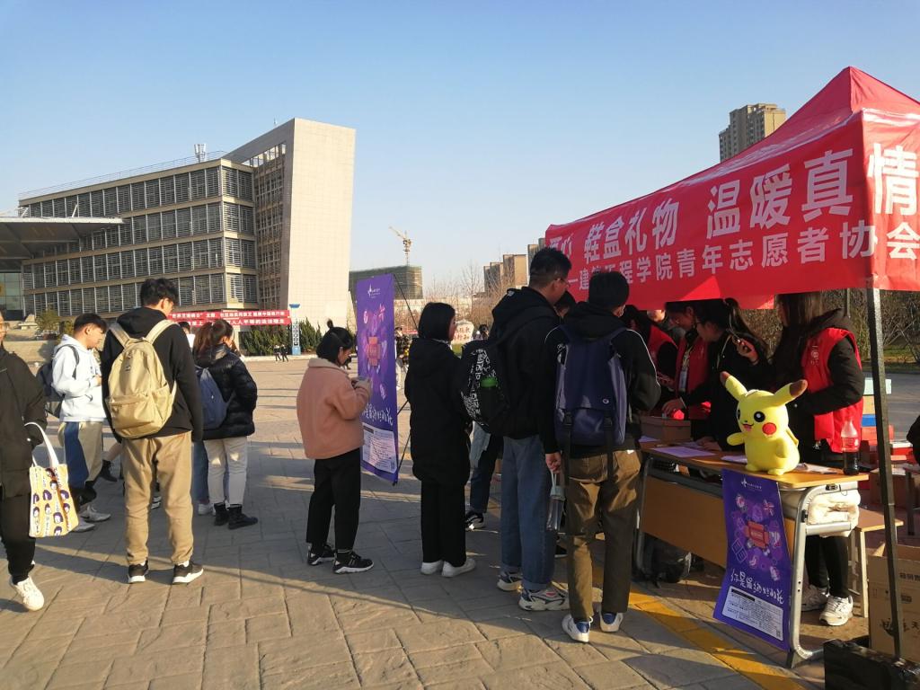 青年志愿者协会志愿者们在经纬广场开展“鞋盒礼物”募捐活动。经过精心的场地布置和物资准备,并通过线上线下的积极宣传,吸引了大量同学驻足参与。活动期间,每天早上8:00到晚上19:00,青年志愿者协会的成员们始终轮班坚守在募捐摊位,他们秉承“奉献、友爱、互助、进步”的志愿精神,用实际行动感染身边的人,用爱心呼吁着同学们积极募捐。一件件“鞋盒礼物”如同一缕缕丝带将大学生们与贫困山区的孩子们相连,在这个寒冷的冬天带给孩子们希望与温暖。在各个部门统筹协调以及同学们的积极配合下,此次活动取得了良好的效果。现场募捐结束后,志愿者们连夜加班清点、登记、打包,统计到共募捐“鞋盒礼物”431份。12月下旬将募捐所得与陕西纯山教育基金会交接完毕,基金会的志愿者们已于春节前将礼物送到西安蓝田、渭南蒲城等山区贫困学校的孩子们手中。
