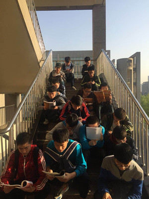 校园里鸟语花香,景色宜人。同学们迎着清晨微光,迎着朝霞,怀揣着对英语的热爱,如约来到教室、工四楼前空地、鸭子湖畔、校友林、经纬广场等地有序开展晨读,用晨读代替沉睡,大家利用百词斩APP、大学英语教材、四六级词汇书认真地学习英语。