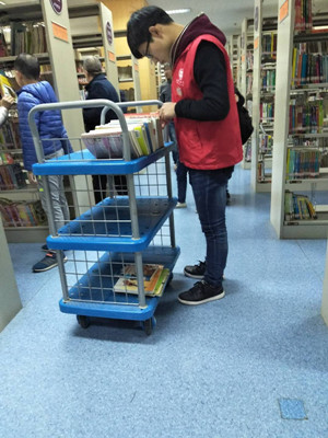 活动前期,相关负责人写好策划,并联系图书馆负责人,说明此次活动内容、方式及目的。志愿者们在图书馆工作人员的指引下来到阅览室,在受过简单的培训后,志愿者们分工协做,打扫图书馆内环境卫生,将杂乱无章的书籍贴上标签进行分类管理并排列整齐到对应的书架上。经过志愿者们2个小时的不懈努力,图书放置变得井然有序,既方便了工作人员的管理,又减少了读者查阅不必要的麻烦。
