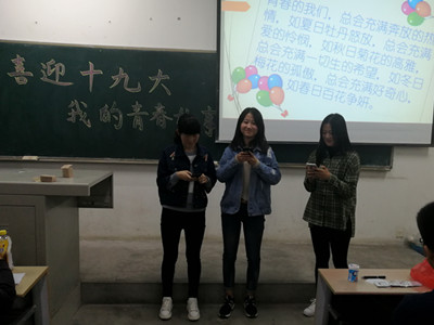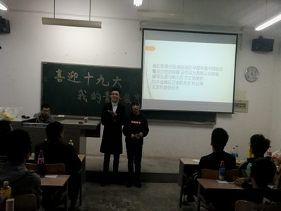 师生反响热烈,18日下午15:30在教3-305教室,17070104班第一时间开展了“喜迎十九大,我的青春故事”主题班会。辅导员刘冬、党员辅导员潘景旭及全班学生参加了此次活动。活动由姜晓旭、陈晓艳同学主持。