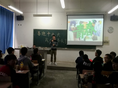 首先,学生代表陈新朗诵诗歌《面对鲜红的党旗》以表达广大学子对党的十九大顺利召开的热烈祝贺。随后,党员辅导员潘景旭为同学们讲述了党的历程和奋斗目标。之后,通过班级成员的自我介绍,同学们既增进了对彼此的了解,也是活动破冰的开始。同学们通过一组高中时代的青涩影像唤起自己的青春记忆,在集体合唱完校园歌曲《北京东路的日子》后,大家都若有所思地回忆起自己的青春往事。在“击鼓传花”游戏环节里,同学们踊跃上台向大家讲述了自己的青春故事,字句间充满着花季雨季中独有的属于青春的味道。诚然,青春值得追忆,但未来的生活更让人向往,对于我们大学生而言,美好的大学生活究竟该如何度过,辅导员刘冬老师分享了自己的青春故事。他结合自身大学经历,以过来人的身份指导同学们如何从学习、生活、人际交往及未来规划等方面积极面对大学生活,成为新一批西工优秀学子,同学们听后纷纷表示受益匪浅。才艺展示环节里,一首《我们都一样》将大家都带回了对青春的回忆中,之后同学们积极向大家展示了歌舞才艺,现场不时发出欢呼声,把气氛推向了最高点。最后全体成员在黑板上写下自己的名字并合影留念,主题班会在轻松、愉快的氛围中落下帷幕。