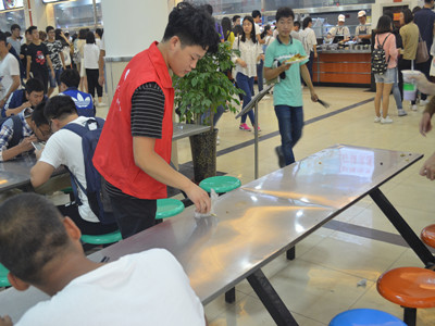 团委全体成员在学校博艺食堂举行食堂文明就餐倡议活动。