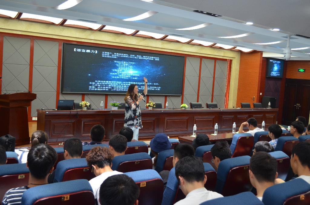 活动开始《长安夜话》栏目主持人、美国AAH注册催眠师、NLP专业执行师、国家注册心理咨询师、陕西省心理教育研究会副秘书长、西安辉虹心理咨询中心首席咨询师晓辉通过互动交流的方式与学生进行谈心聊天,几名同学都讲出了他们在现实生活中对语言暴力的认知。晓辉说,语言暴力本身并非只有我们听到的谩骂,还有许多语言暴力是在潜移默化中对我们产生影响,而这个影响会长达五年、十年、甚至更长的时间。她希望教会大家先学会聆听再学会说话。