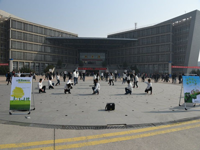 30多名第53期分党校学员在经纬广场停下脚步,和着炫动的音律,迈开舞步……一场突如其来的“降污减霾,绿色出行”主题宣传快闪舞来到校园中,引来不少同学驻足观看、拍照,为校园的课间增添了一道魅力风景线。