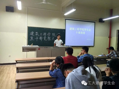 9月20日晚,建工学院学生会在工4-202举行部长级别干部竞聘会。学生会指导教师安春雨参加了会议,新一届学生会主席段随浩主持竞聘会。