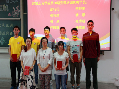 庄严的国歌奏响,土木学生第三党支部书记韩霄带领全体新党员庄严宣誓、老党员重温誓词。入党誓词的十二句话,句句千钧,既概括了党员的基本要求,也概括了党员对党组织和党的事业所应承担的政治责任。此时此刻,在场的每个共产党员都心潮澎湃,热血沸腾!77名党课学员顺利的通过了近两个月的党的理论知识的学习,涌现出了多个表现突出的学生,院党委副书记张艳霞为邵行行等8名优秀学员颁奖。在文艺汇演之前,院党委书记黄越为全场做了激动人心的讲话,更多的是学院学生党员发展工作关切及对77位积极分子寄予的厚望。接下来由50期党校学员及各支部带来的文艺汇演节目将活动推向了高潮,文艺表演节目在半个多月的精心准备与筹划组织下表演出了形式多样、娱乐高雅的八个节目,同时也展现出本期学员积极向上、乐于奉献的精神面貌以及端正严谨的思想觉悟。最后,活动在全体参会师生合唱《没有共产党就没有新中国》的歌声中落下帷幕。