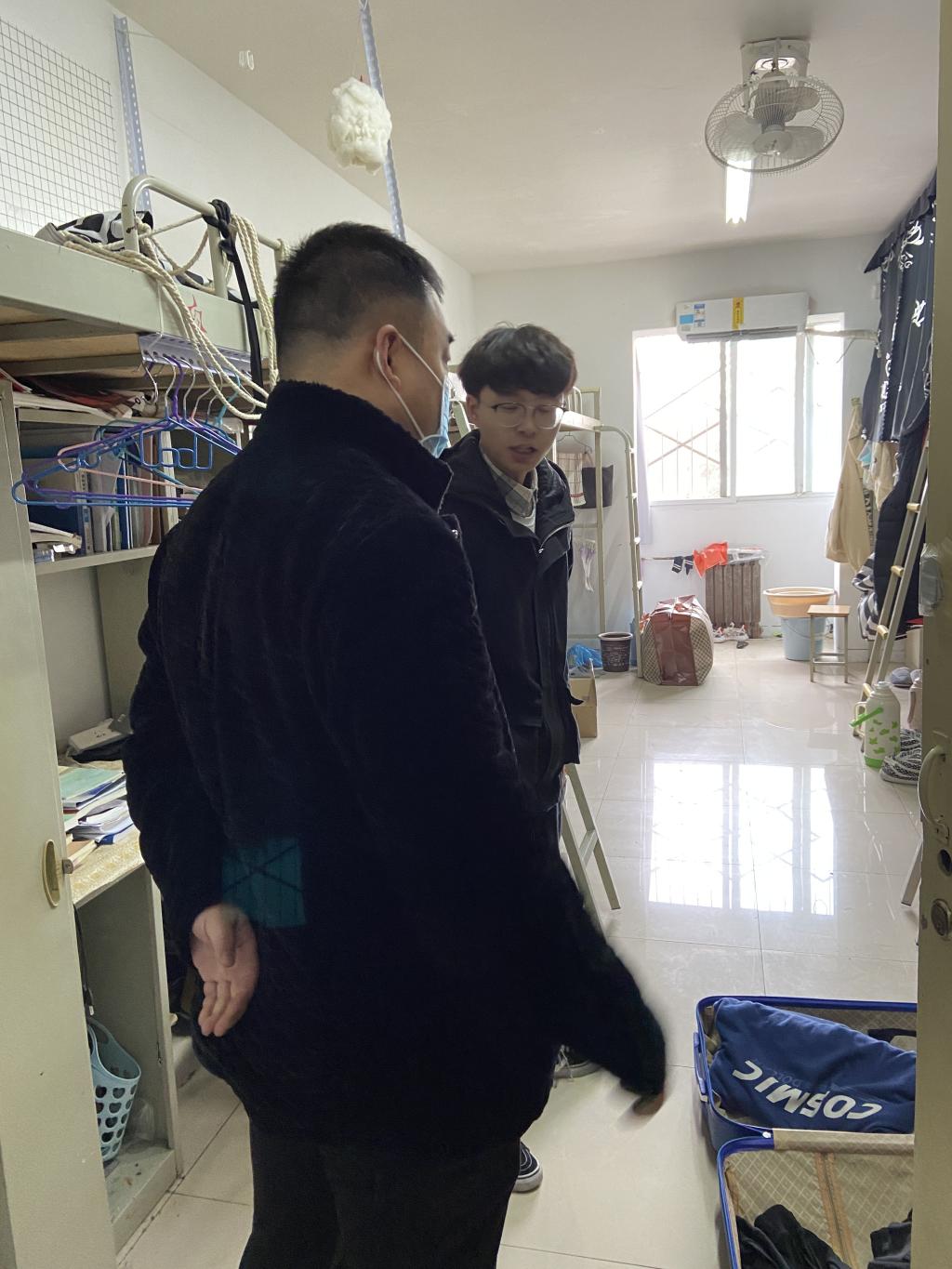 党委副书记翟超与辅导员走访了本科生宿舍,详细了解学生情况,开展宿舍安全检查,加强对学生的安全教育。