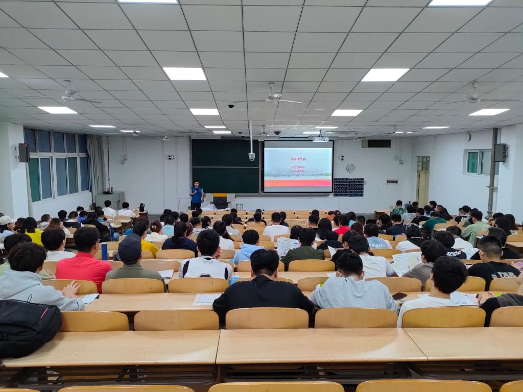 学院精准调研学生毕业去向,分类进行指导。9月26日-9月27日,学院召开就业动员会和考研动员会。会上,毕业班辅导员何鹏程向同学们介绍了近几年学院就业形势、考研情况及毕业生发展状况。学院副院长郭庆军、邓祥辉教授从不同角度对考研专业、考研学校、初试专业课考试类型等方面提供备考建议。另外,学院邀请校友中建八局陆港•宁海湾项目党支部书记常璐和碧桂园香湖湾项目工程经理赵向科为同学们分享求职、考研经验,为同学们踏入社会、适应社会起到了良好的铺垫作用。