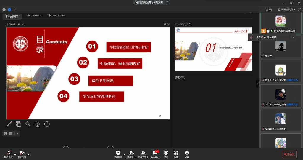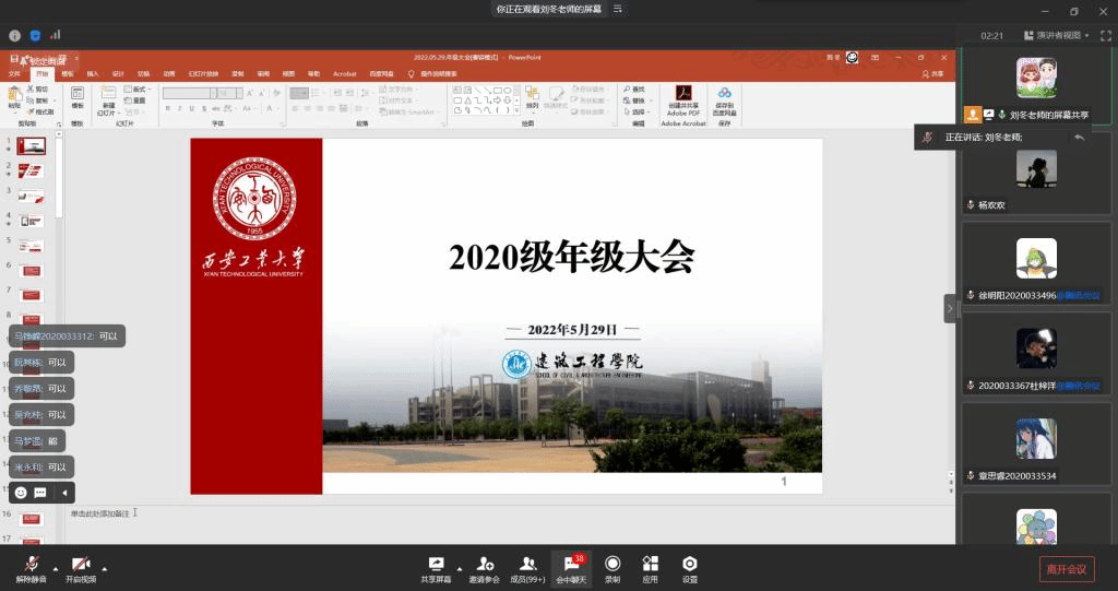 2020级召开线上年级大会,辅导员刘冬和年级278名同学围绕近期学习生活开展交流。