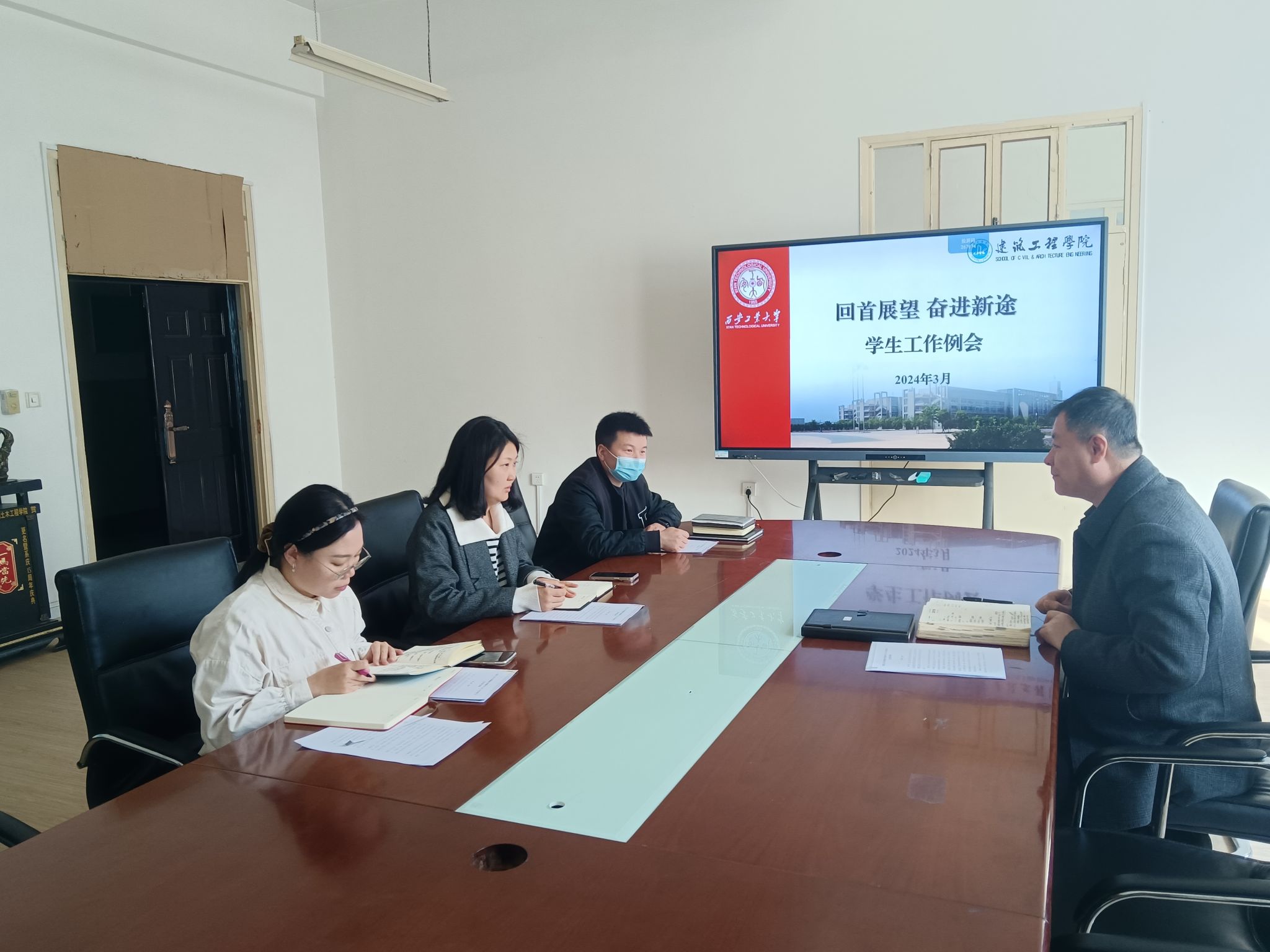 召开学生工作例会,就近期工作重点展开讨论。全体本科生辅导员参会,党委副书记贾建利主持会议。