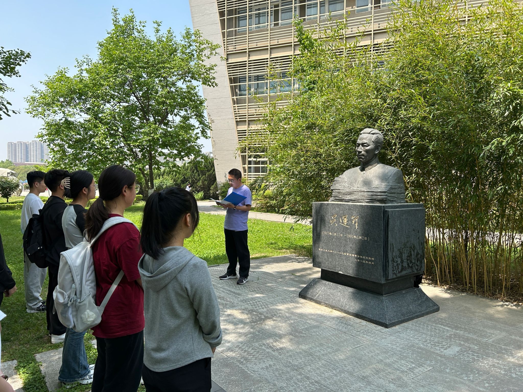 组织发展对象于图书馆南侧大道吴运铎雕像旁举行了“纪念吴运铎”活动,91短视频