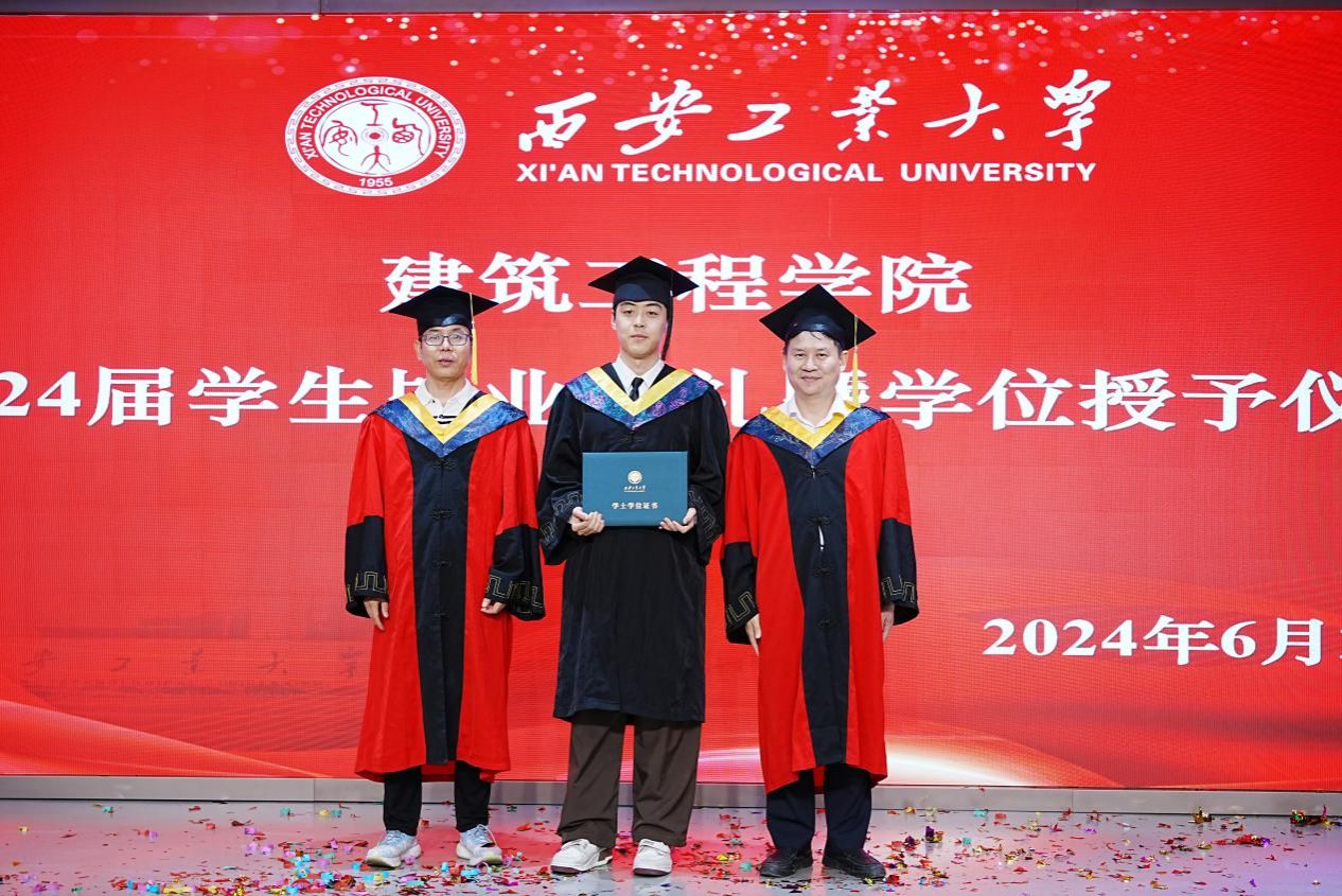 刘慧萍宣读2024届毕业生名单、授予学位决定和表彰优秀毕业生的决定。随后,黄华与郭庆军、张治宏依次为研究生和本科生授予学位证书、拨穗并合影留念。在众人的期待中,毕业生们穿着学士服,整齐划一地走上台。他们笑容满面,眼里闪烁着光彩。每个人都怀揣着梦想和希望,彼此传递着坚毅与信心,准备迎接人生中的新挑战。仪式结束后,学院全体领导及教师代表目送毕业生离场。