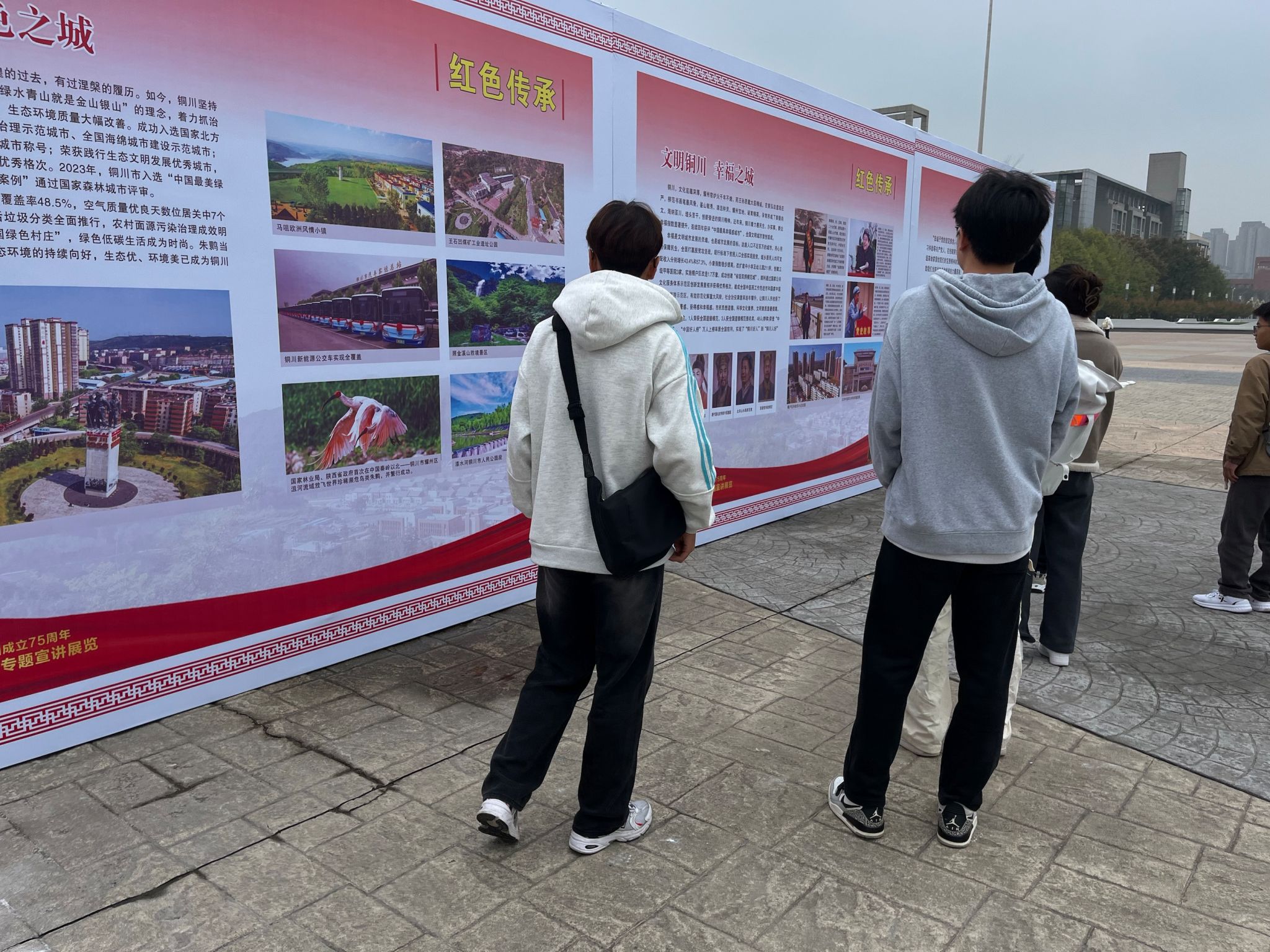 组织少数民族学生在学校经纬广场前参观庆祝新中国成立75周年“照金精神”专题宣讲展览,旨在深入了解陕甘边革命历史,传承红色基因,锻精神之脊、铸信仰之魂。