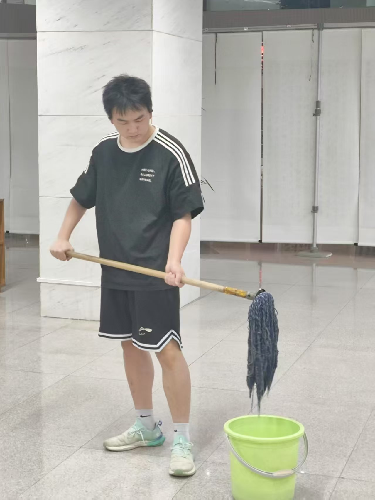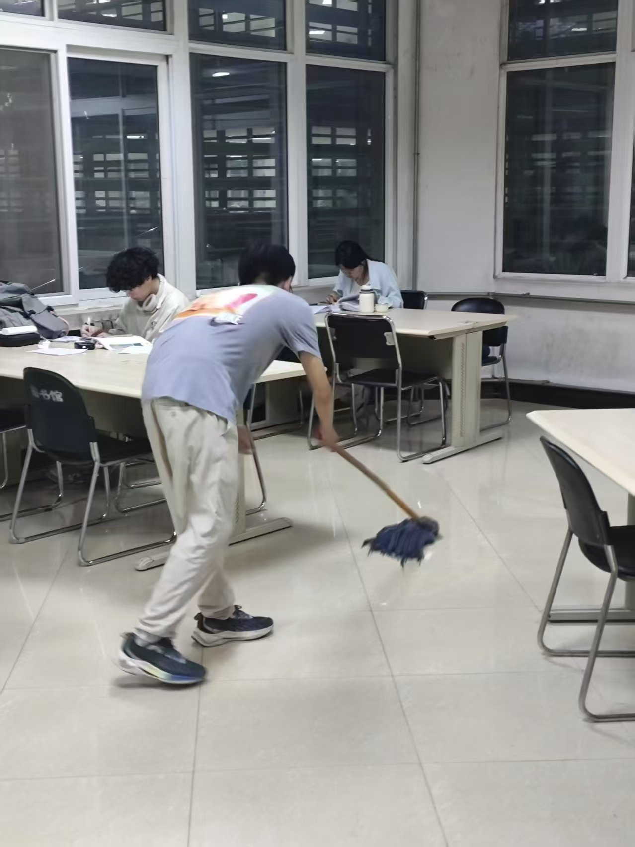 活动当天,同学们热情高涨,带着扫帚、拖把、抹布、垃圾袋等清洁工具,准时到达指定区域。在图书馆大厅,同学们分工明确,协作有序。整个劳动过程中,同学们不怕脏、不怕累,专注投入,展现了建工学子踏实肯干的精神风貌。经过近一个小时的辛勤付出,图书馆大厅和数个大型教室窗明几净、焕然一新,为师生营造了更加舒适、整洁的学习与交流环境。