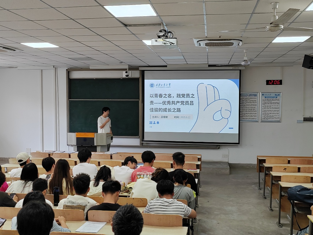 土木学生第二党支部于6月12日举办优秀党员事迹分享会。支部成员吕佳骏同志结合自身经历,生动讲述了一名大学生党员的成长历程。